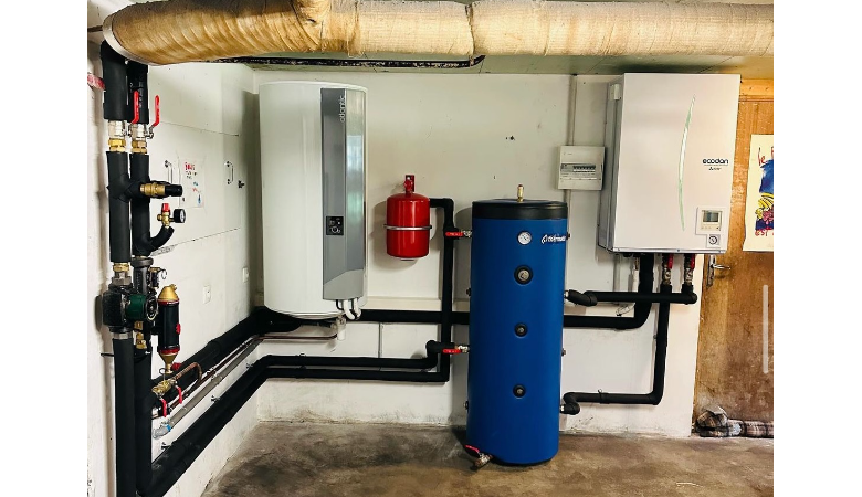Beaucoup de charme mais aussi beaucoup de volume à chauffer, un beau travail par nos équipes, installation d'une pompe…
