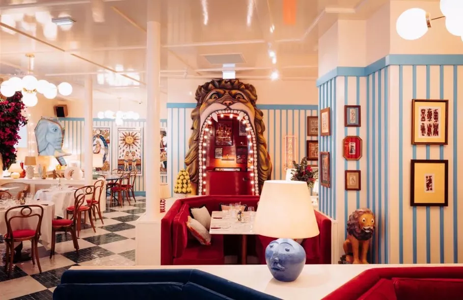 Ce nouveau projet Big Mamma de 700 m² se situe près du vieux port de Marseille. Il s'agit d'une trattoria chic et branchée, à la déco ostentatoire. Les designers se sont inspirés de l'univers du cirque italien : excentricité et flamboyance sont au programme.